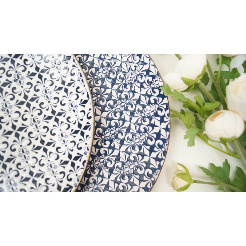 12 dinner plates (3 blue,3 white) 10,5" / 26,6cm